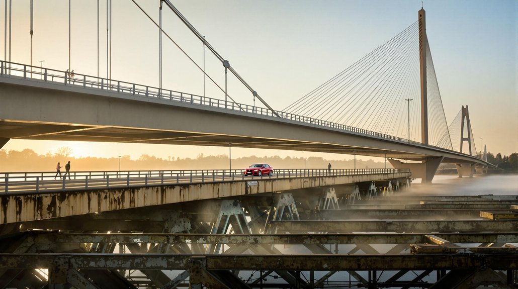 De middenklasse bruggen (€300-€700) zijn meestal gemaakt van zwaar staal, hebben betere stabiliteit en kunnen gewichten tot 5400 kilo aan. In deze prijsklasse zie je betere laskwaliteit, roestwerende coatings en betrouwbaardere vergrendelingen.