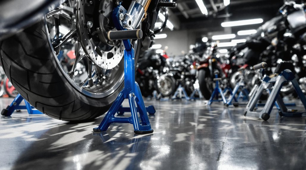 Middenklasse standaards van 75 tot 150 euro zijn steviger gemaakt van betere materialen, hebben verstelbare hoogtes en betere vergrendelingen. Deze hebben meestal rubber bescherming en kunnen motoren tot 275 kilo stabiel houden.