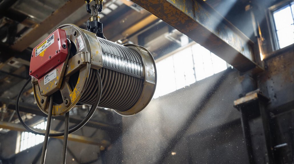 Om aan de regels te blijven voldoen, moet je regelmatig een belastingtest doen met 125% van het maximale tilgewicht. Schrijf de resultaten op in je veiligheidslogboek. Denk eraan dat dingen zoals chemicaliën of extreme temperaturen invloed kunnen hebben op hoe sterk je hijskabel is. Tijdens controles moet je letten op zichtbare slijtage, zoals gebroken draden, knikken of roest. Deze problemen kunnen ervoor zorgen dat je takel minder gewicht veilig kan tillen.
